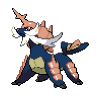 Utiliza una parte de la coraza de sus patas delanteras como un gran sable. Intimida a sus rivales con solo gruñir.