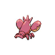 Una vez que agarra a su presa con sus grandes pinzas, no la suelta pase lo que pase. Es un Pokémon resistente que puede subsistir en cualquier medio.