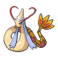 Dicen que vive en el fondo de los grandes lagos. Se le considera el Pokémon más bello que existe y se le ha representado en multitud de pinturas y estatuas.