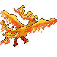 Moltres es un legendario pájaro Pokémon que tiene la habilidad de controlar el fuego. Dicen que, si resulta herido, se sumerge en el líquido magma de un volcán para arder y curarse.