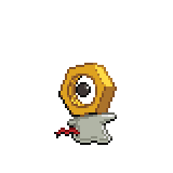 La mayor parte del cuerpo de Meltan está compuesta de metal líquido, lo que le confiere una silueta maleable y fluida.