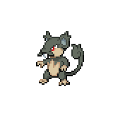 A Raticate's sturdy fangs grow steadily. To keep them ground down, it gnaws on rocks and logs. It may even chew on the walls of houses.